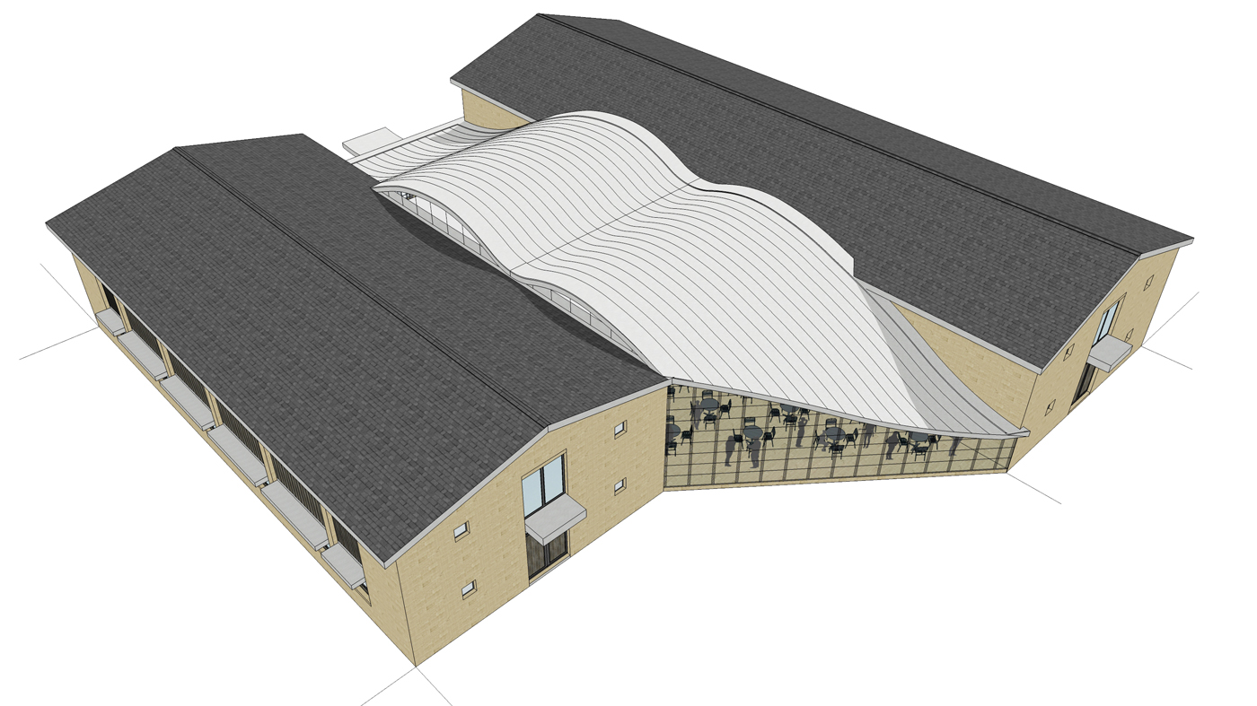 The atrium is to be read as a contrasting design that is subservient to the original structures, is as light and airy as possible and allows the entire composition to read as linked but articulated buildings rather than as a consolidated single block. It is proposed that the roof for the atrium will be formed to the curved profile with a standing seam zinc covering, with concealed gutters.